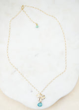 Blue Apatite Flower Gold Necklace