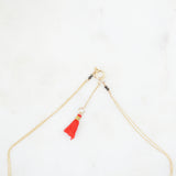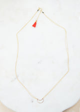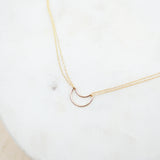 Dainty doubled chain gold necklace with crescent moon wire pendant, this sleek necklace styles well with any outfit.