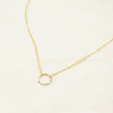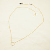 Dainty doubled chain gold necklace with open circle wire pendant, this sleek necklace styles well with any outfit.